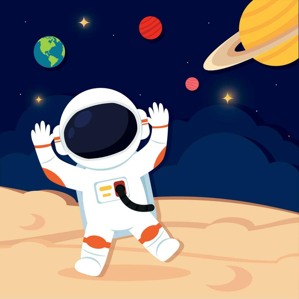Layered view of outer space with an astronaut on a planet Vector Pro Vector