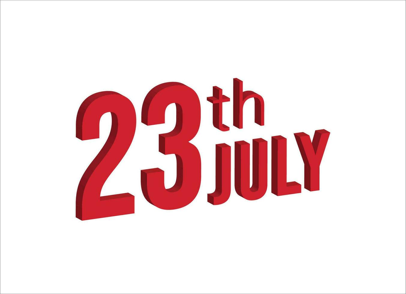 23rd july ,  Daily calendar time and date schedule symbol. Modern design, 3d rendering. White background. vector