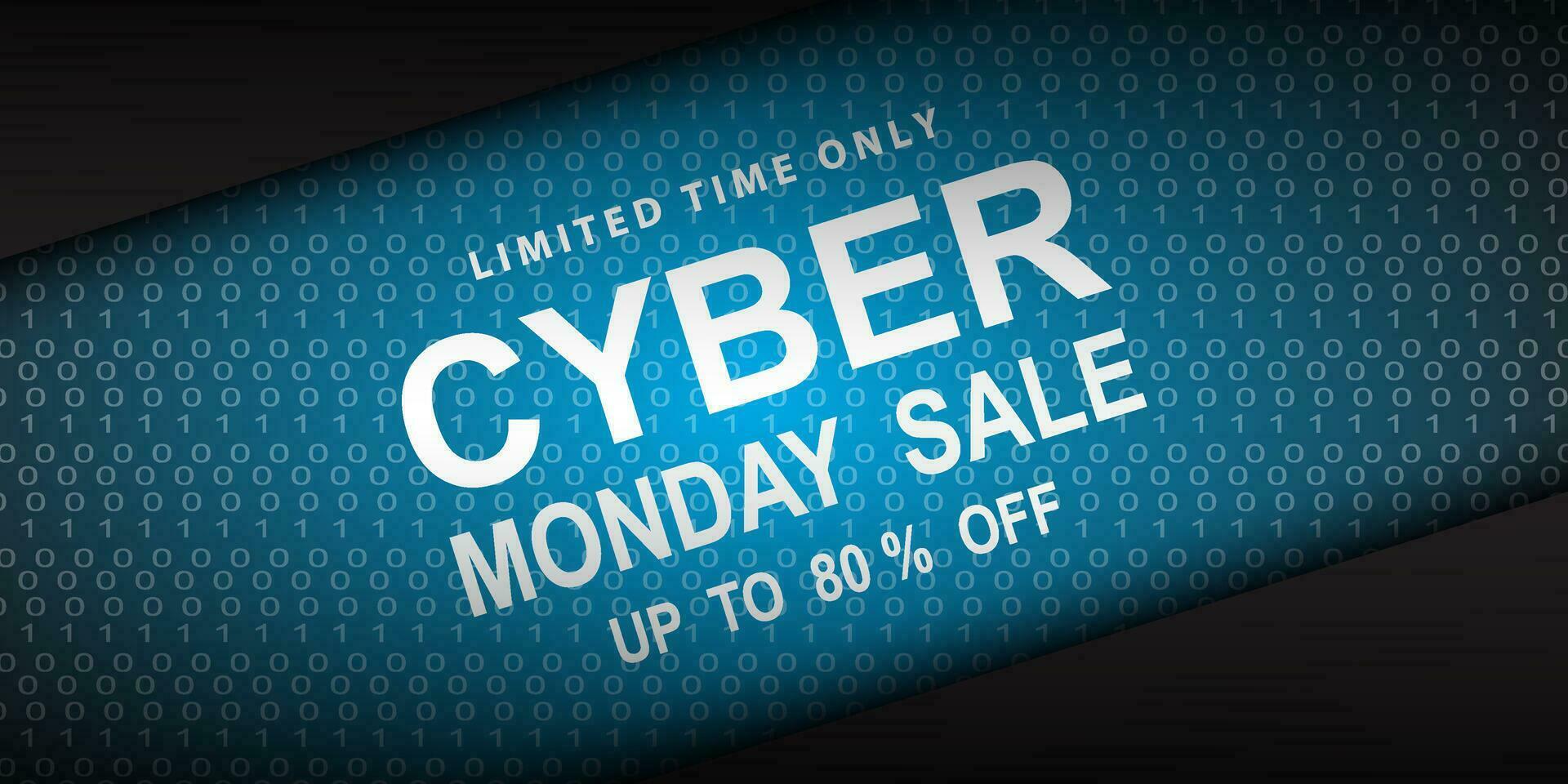cyber monday sale on binary background. vector illustration EPS 10. Pro Vector