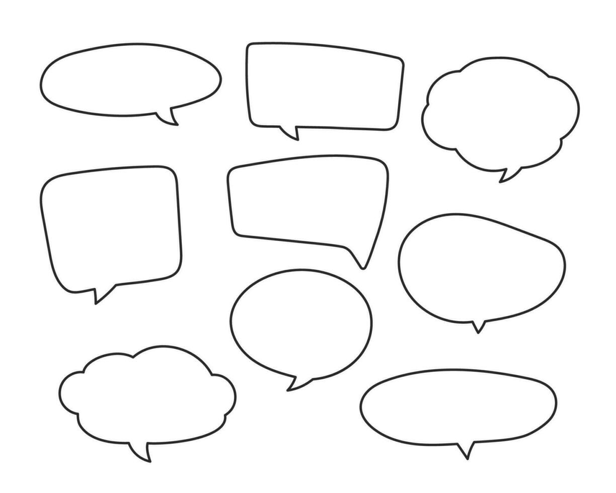 Speech symbol talk and thinking hand drawn style. Bubble with clouds thin line set. Pro Vector