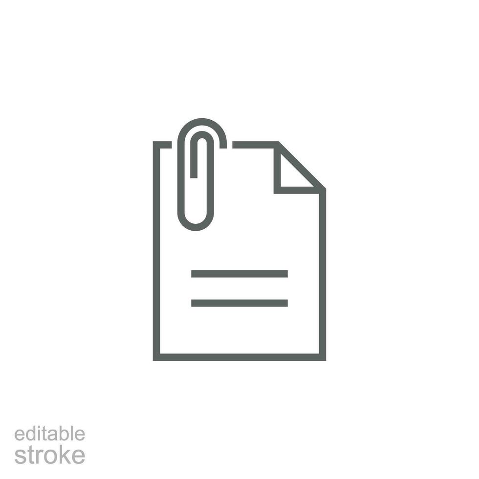 File attachment icon. Simple outline style. Paper clip, attach document, fastener, upload attachments, office concept. Thin line symbol. Vector isolated on white background. Editable stroke SVG. Pro Vector