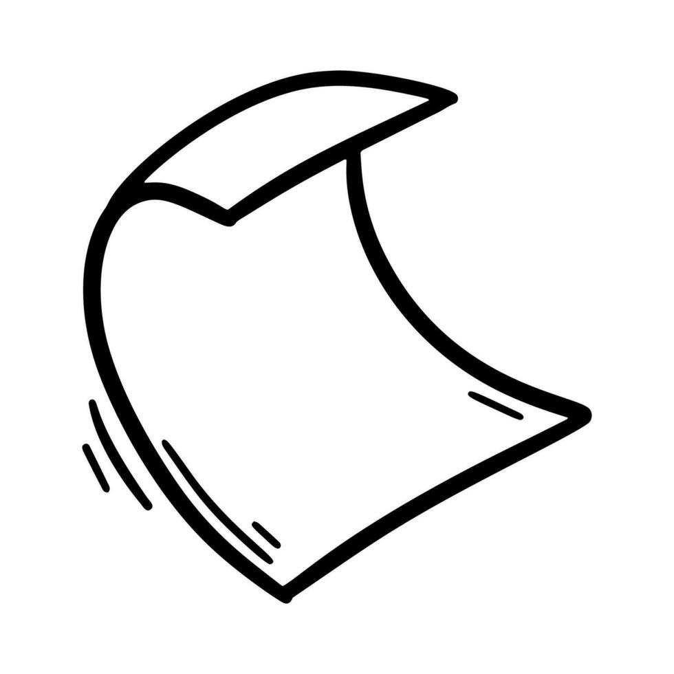 Curled flying page. Empty paper blank. Document in doodle style. Hand drawn scroll. Office business vector illustration. Document sketch Pro Vector
