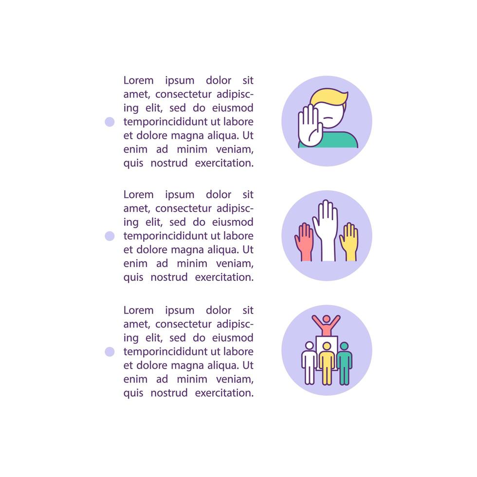 Public attitude concept line icons with text. PPT page vector template with copy space. Brochure, magazine, newsletter design element. Racial social problems linear illustrations on white Pro Vector
