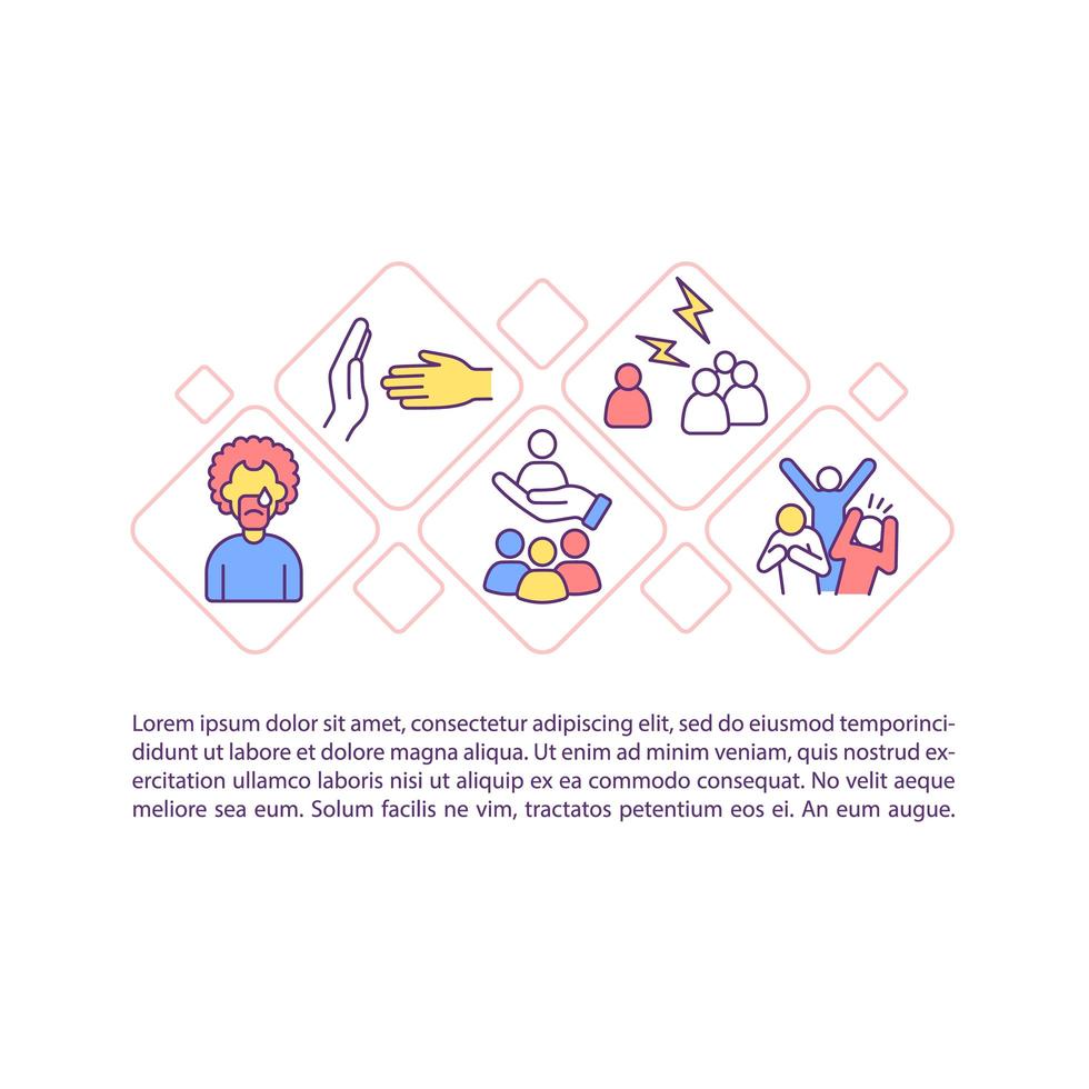 Racism in modern world concept line icons with text. PPT page vector template with copy space. Brochure, magazine, newsletter design element. Racial intolerance linear illustrations on white Pro Vector