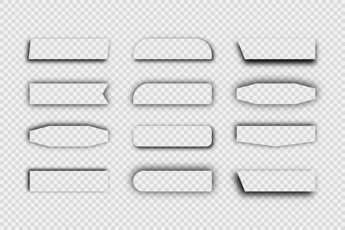 Dark realistic shadow. Set of twelve rectangular shadows isolated on background. Vector illustration. Pro Vector