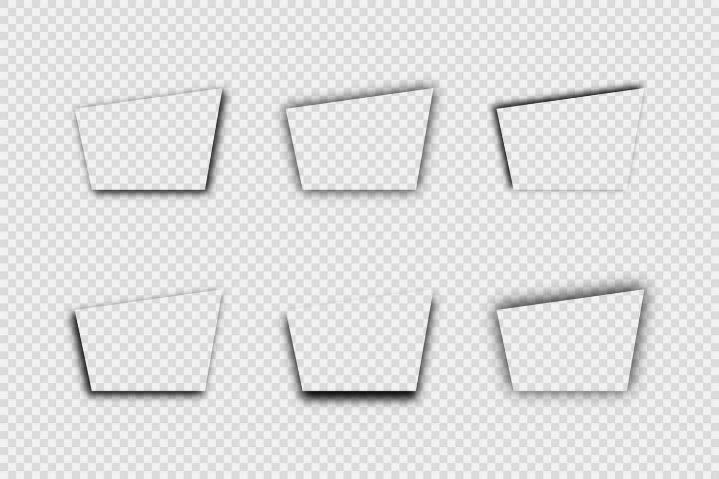 Dark realistic shadow. Set of six trapezoid shadows isolated on background. Vector illustration. Pro Vector