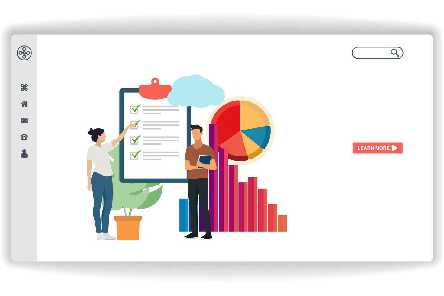 A man is carrying a book. website page Data Analitycs. Modern flat design concept of web page design for website and mobile website Pro Vector