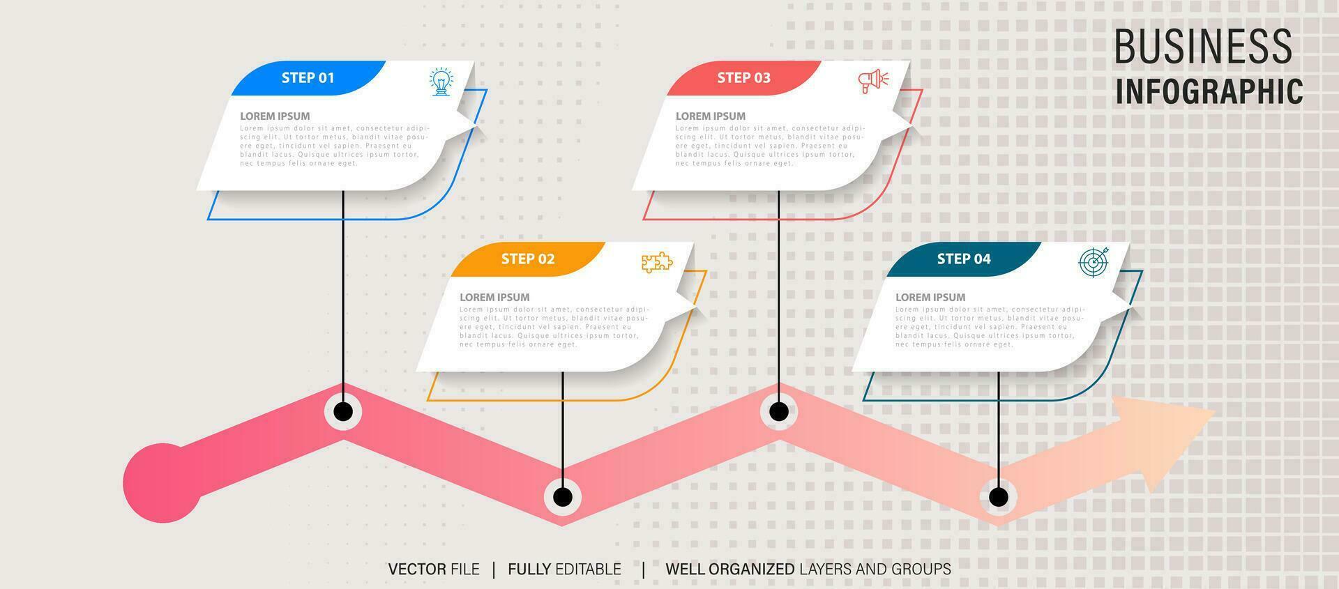 Modern business infographic for company milestones timeline template with flat icons. Easy to use for your website or presentation. vector