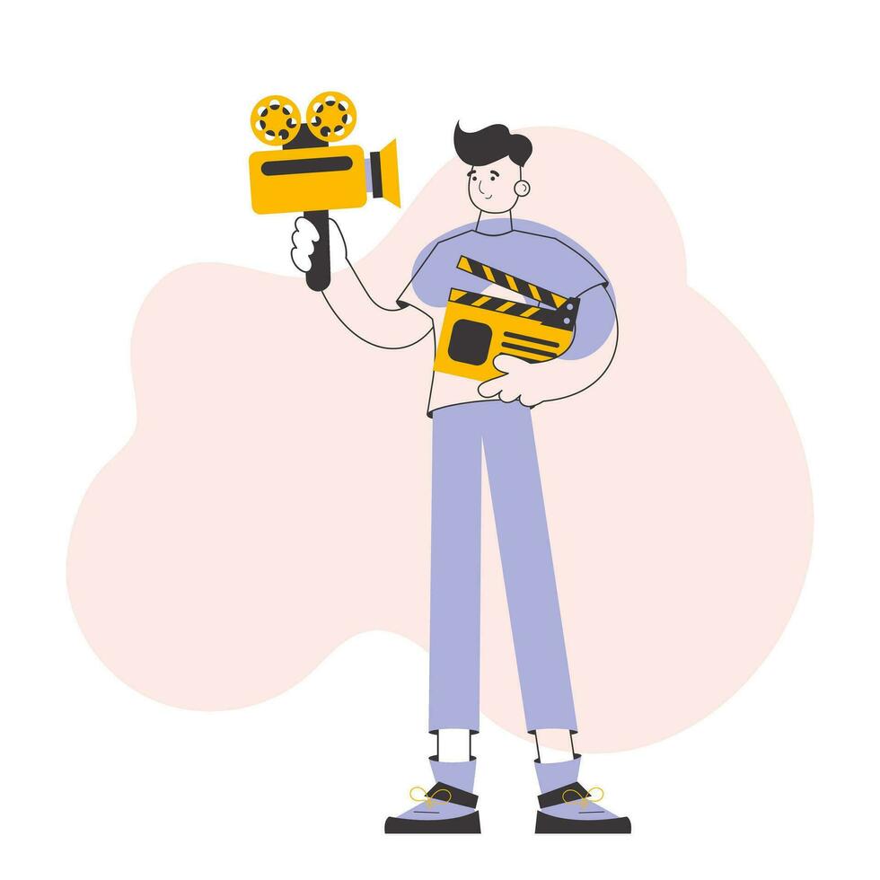 Blogger guy. The concept of social networking. Line art trendy style. . Pro Vector