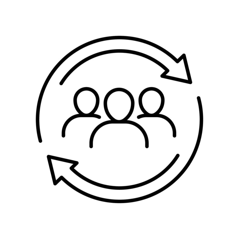 Update team icon. Simple outline style. Teamwork partnership, collaboration strategy, refresh team interaction, arrow reload, management concept. Thin line symbol. Vector illustration isolated. Pro Vector