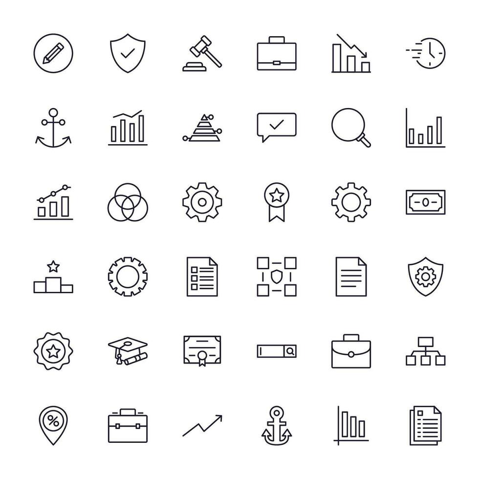 Business line icon set. Collection of commerce uotline sighn for web design, mobile app, UI design, etc. Dark blue line symbol of finance on white background. Pro Vector