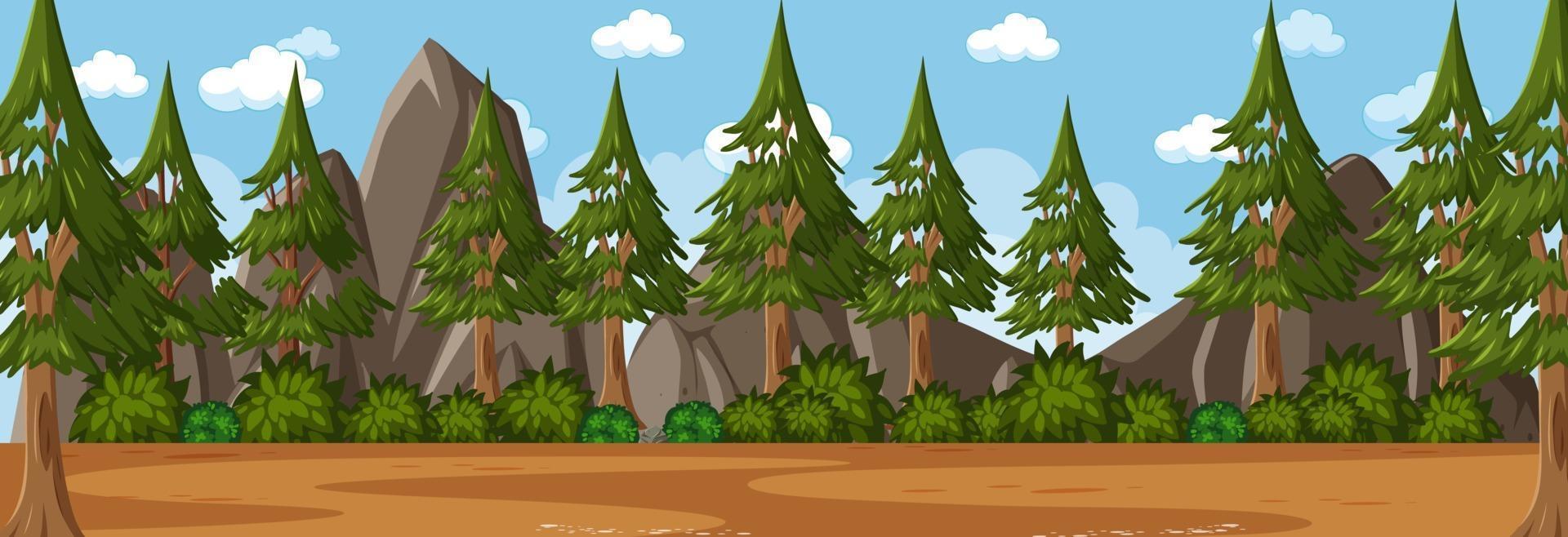Forest horizontal scene at day time with many pine trees background Free Vector