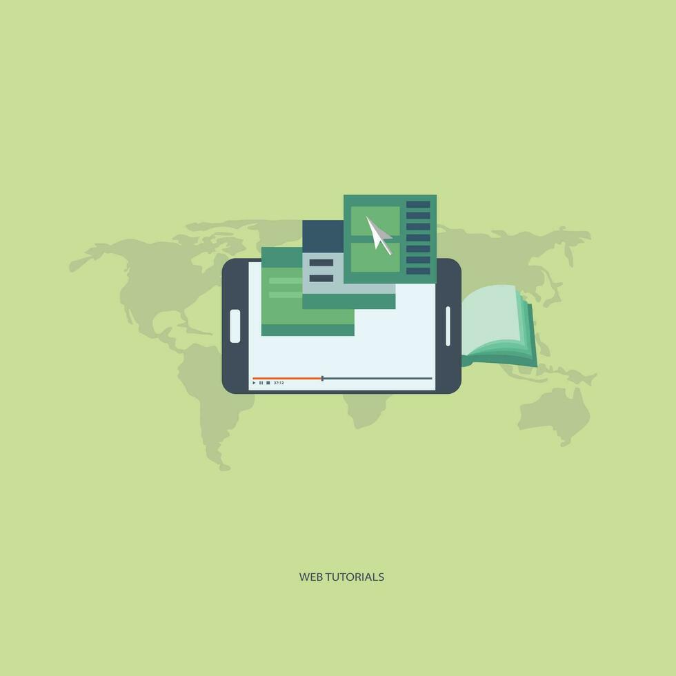 On line education, distant education technology concept. Web tutorials. Usable for web banner, wed sites, info graphics. Smart phone - a tool for learning. Flat vector. vector