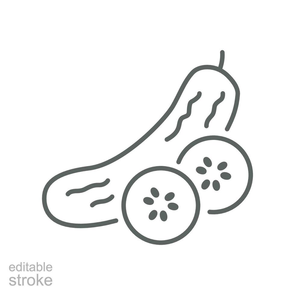 Cucumber icon on slice cross section with seeds. Element of drink and food icon for mobile concept and web apps. Editable stroke. Outline style Vector illustration design on white background. EPS 10 Pro Vector