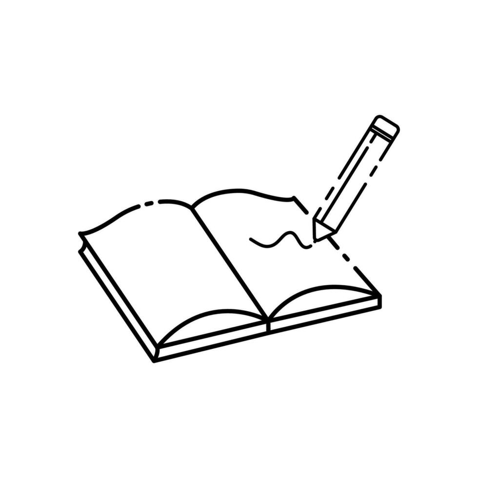 notesIcon of an open notepad and pencil on a white background. Pro Vector