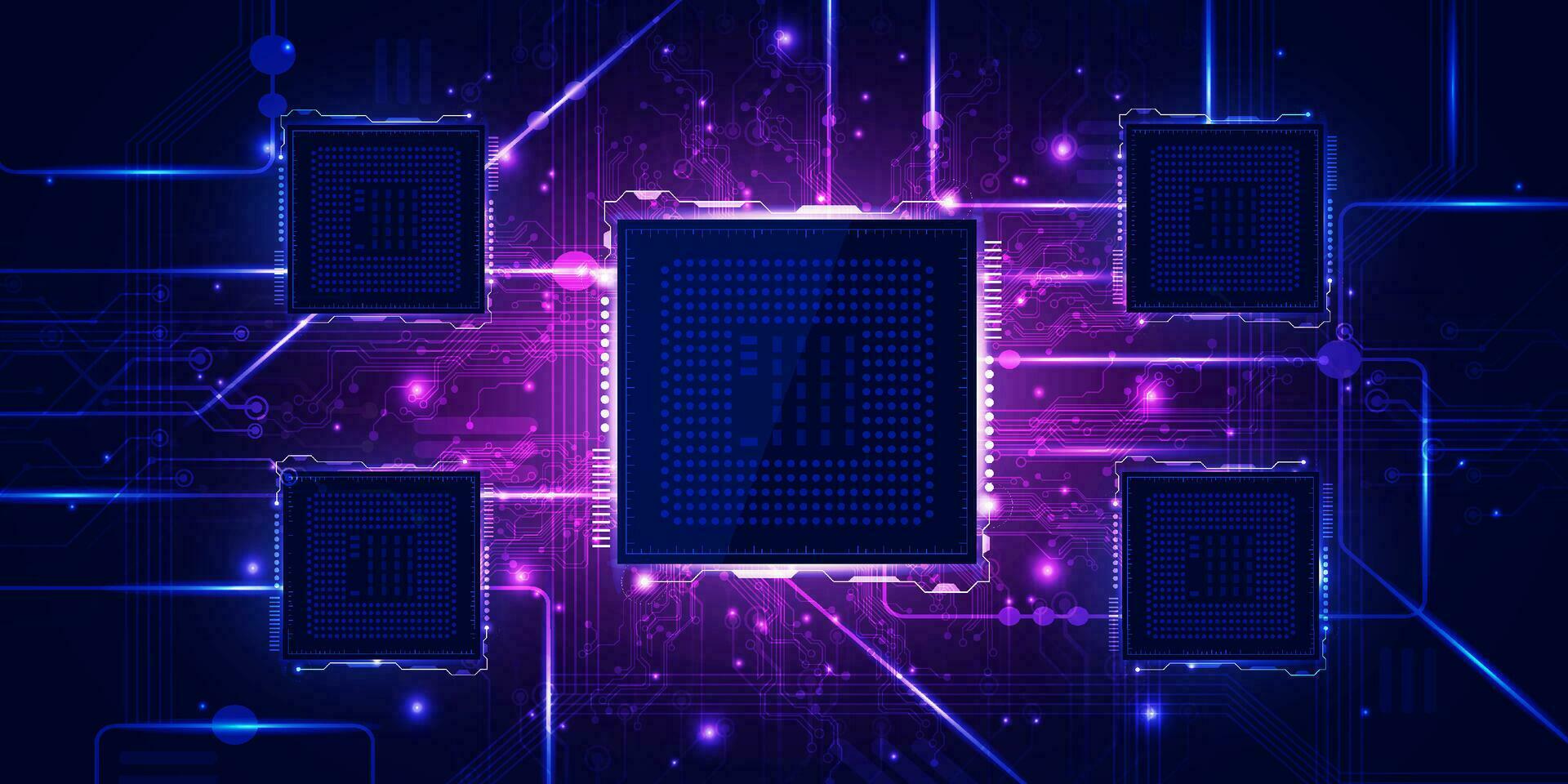 Digital technology CPU processor chip blue background, cyber nano circuit board microchip, abstract communication, innovation futuristic tech, internet network connection, Ai big data, illustration 3d Pro Vector