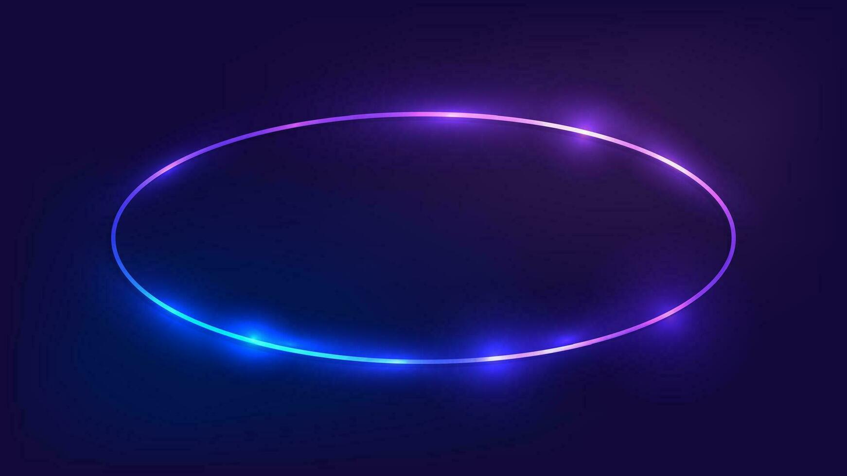 Neon oval frame with shining effects on dark background. Empty glowing techno backdrop. Vector illustration. Pro Vector