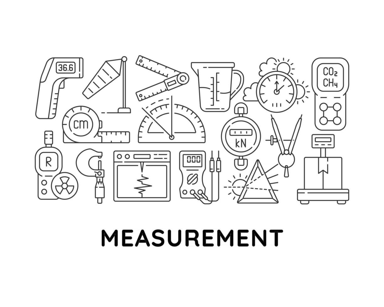 Measurement tools abstract linear concept layout with headline. Devices for measuring minimalistic idea. Weight, length check thin line graphic drawings. Isolated vector contour icons for background Pro Vector