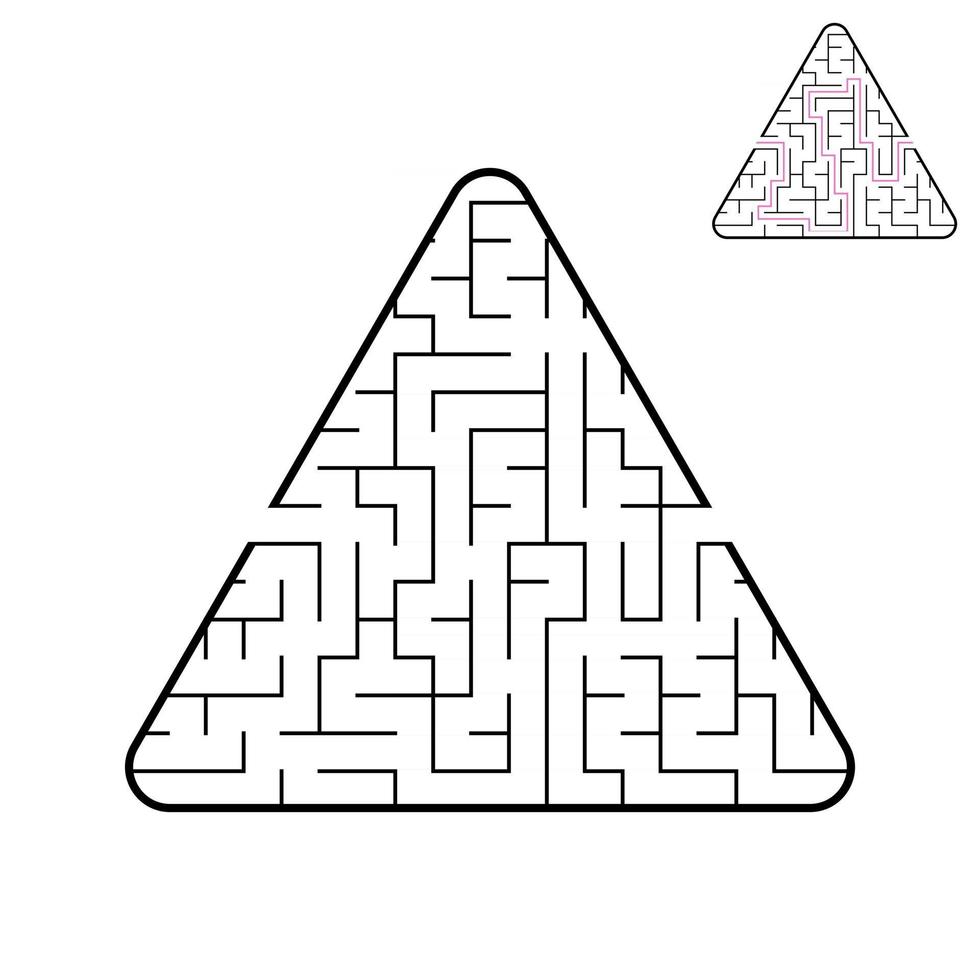 Triangular labyrinth. An interesting and useful game for children. A simple flat vector illustration on a white background. With the decision. Pro Vector