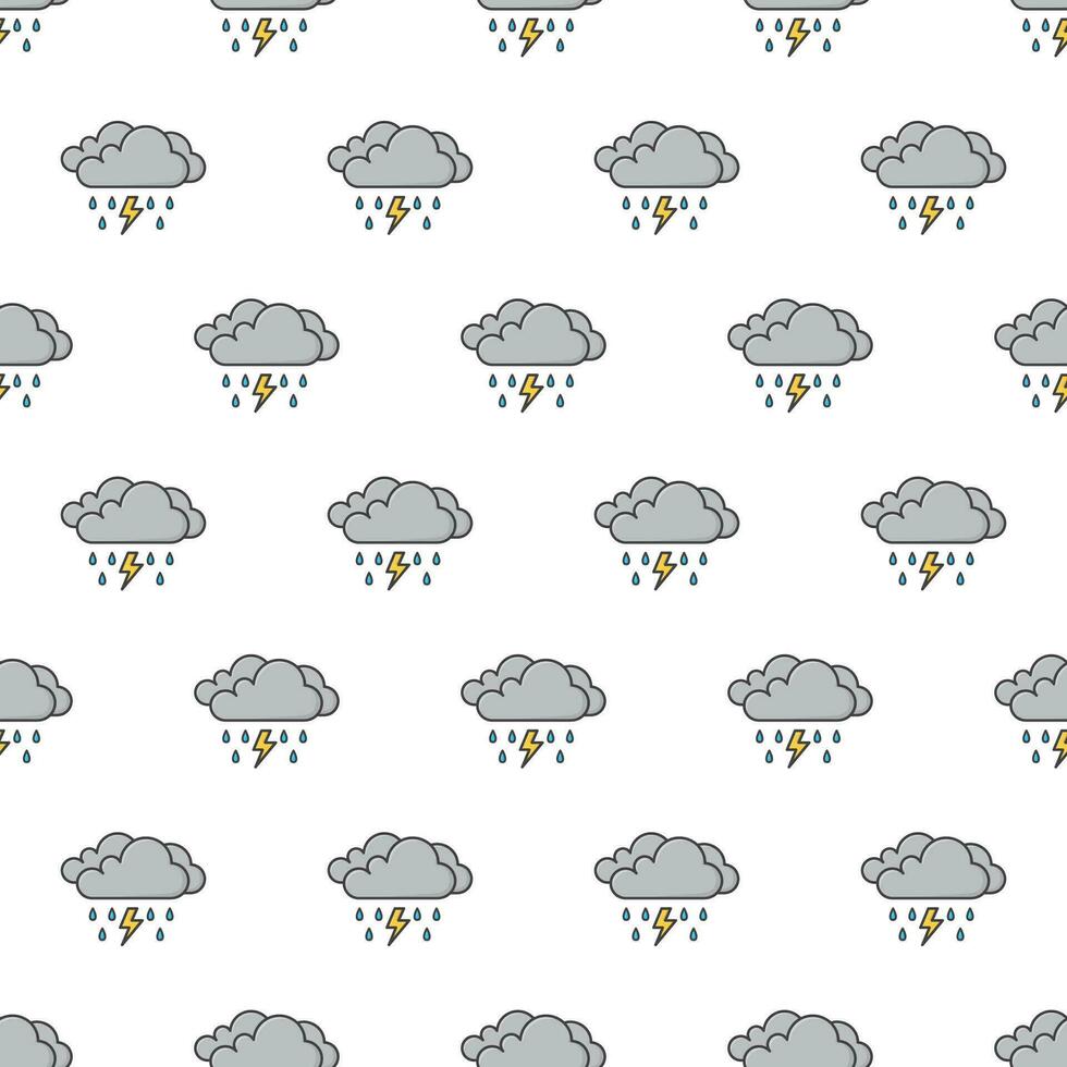 Dark Clouds With Raindrops And Thunder Strom Seamless Pattern On A White Background. Weather Phenomena Theme Vector Illustration Pro Vector
