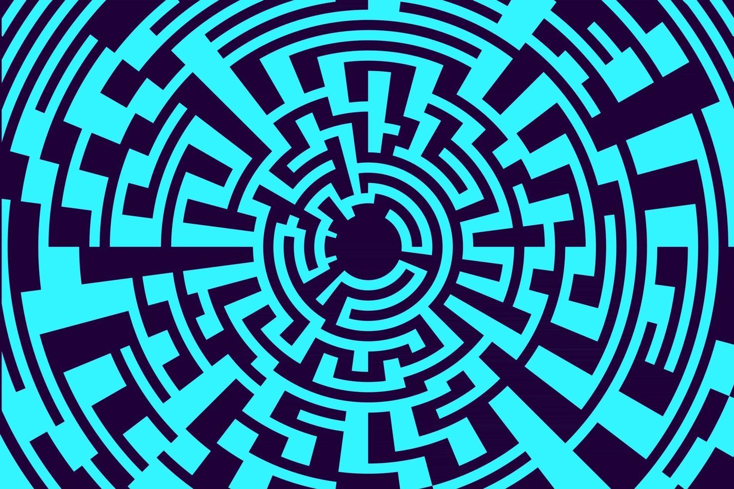 Maze background, blue labyrinth backdrop. Abstract hi tech mosaic background. Modern technology vector backdrop. Pro Vector