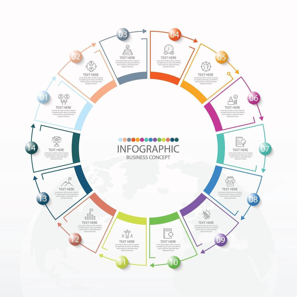 Basic circle infographic template with 14 steps, process or options, process chart, Used for process diagram, presentations, workflow layout, flow chart, infograph. Vector eps10 illustration. Pro Vector