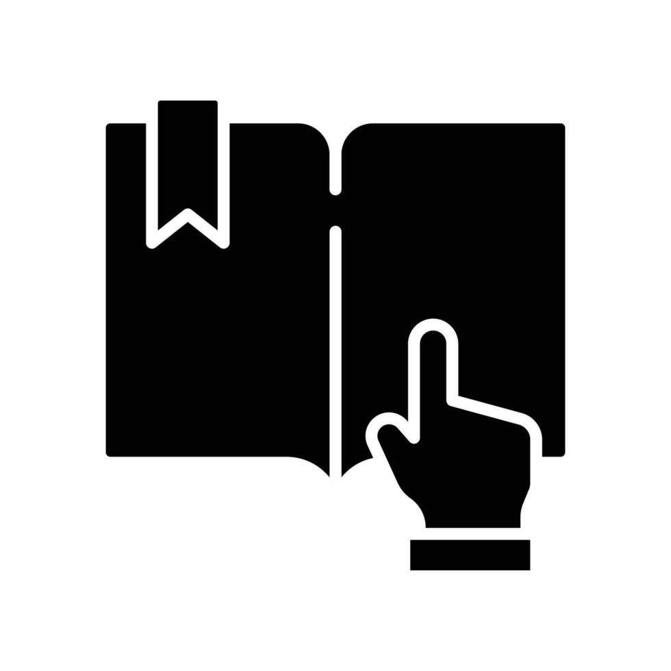 Book click vector glyph icon, Click on online book symbol. open study and reading literature with hand pointer. solid pictogram Vector illustration design on white bakcground. EPS 10 Pro Vector