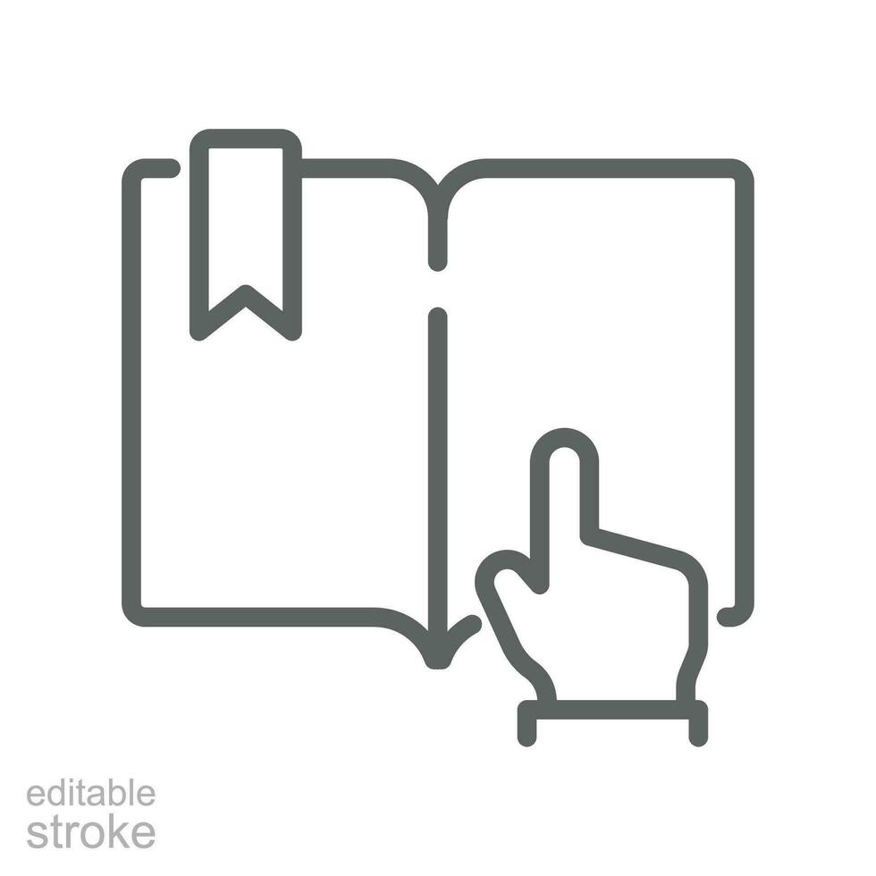 Book click vector icon, Click on online book symbol. open study and reading literature with hand pointer. outline logo pictogram Editable stroke Vector illustration design on white background. EPS 10 Pro Vector