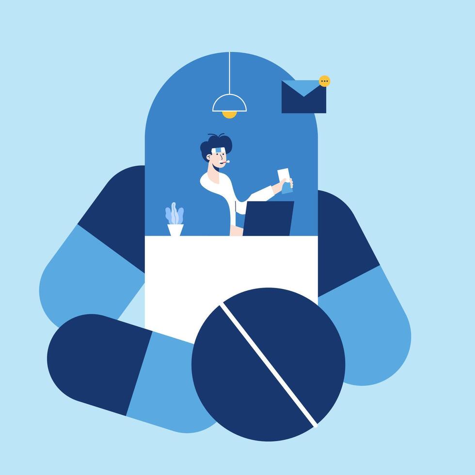 Doctor working on lab web template, cartoon style Screen web template for mobile phone, landing page, template, UI, web, mobile app, poster, banner, flat Vector illustration Pro Vector