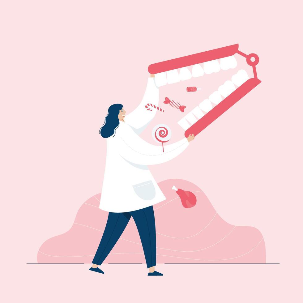 Dentist researching web template, cartoon style Screen web template for mobile phone, landing page, template, UI, web, mobile app, poster, banner, flat Vector illustration Pro Vector