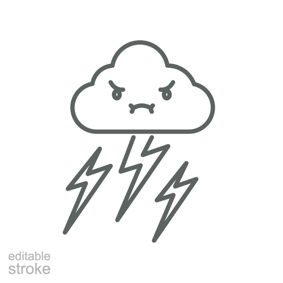 Cloud sky with character line icon. Angry storm cloud with lightning. sky with electric storm thunder. Weather for logo, app web. Editable stroke Vector illustration Design on white background EPS 10 Pro Vector