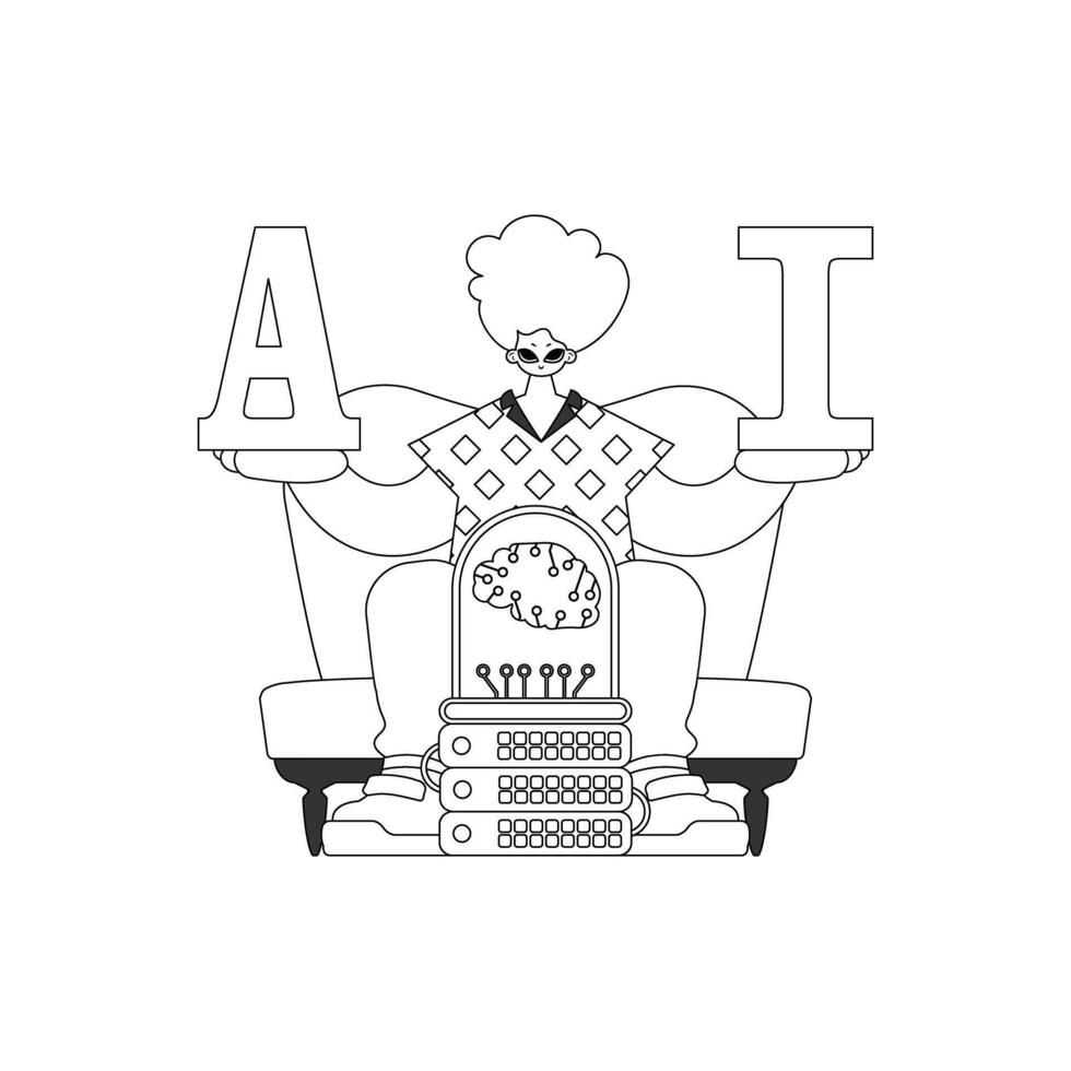 He grasping two AI letters, connected to Artificial Intelligence, set in a simplified vector design Pro Vector