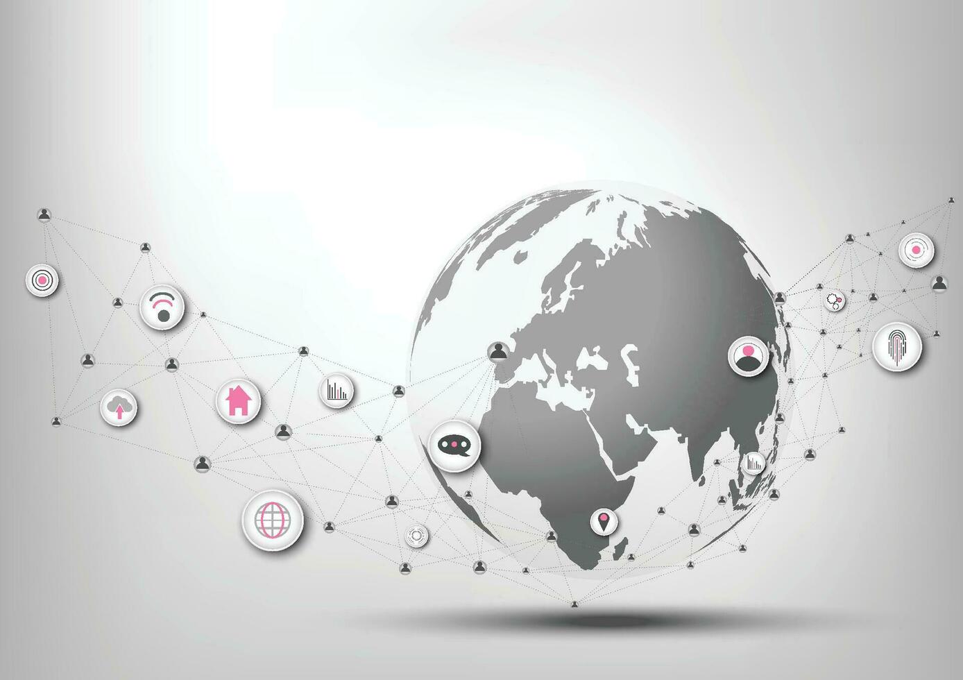 Network communication technology for global.Data network communication in the global computer networks.telecommunication, earth cryptocurrency.Vector modern technology and communication concept. Pro Vector