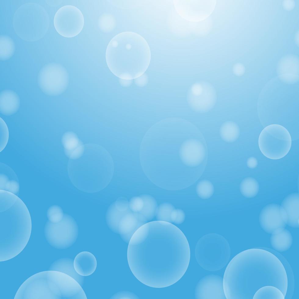 Light blue abstract background with a bokeh in the form of circles. Underwater world with air bubbles. Vector illustration. Pro Vector