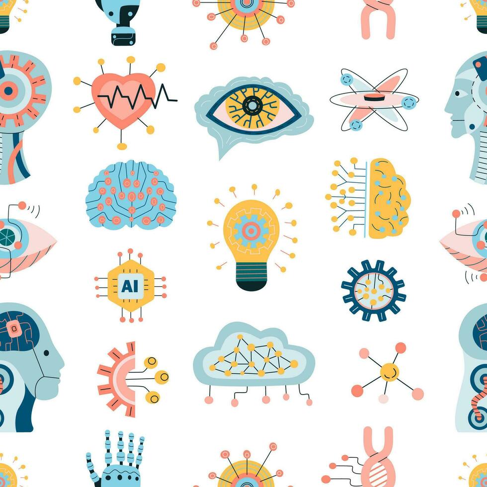 Technology seamless pattern with Hand Drawn Neural Networks Pro Vector