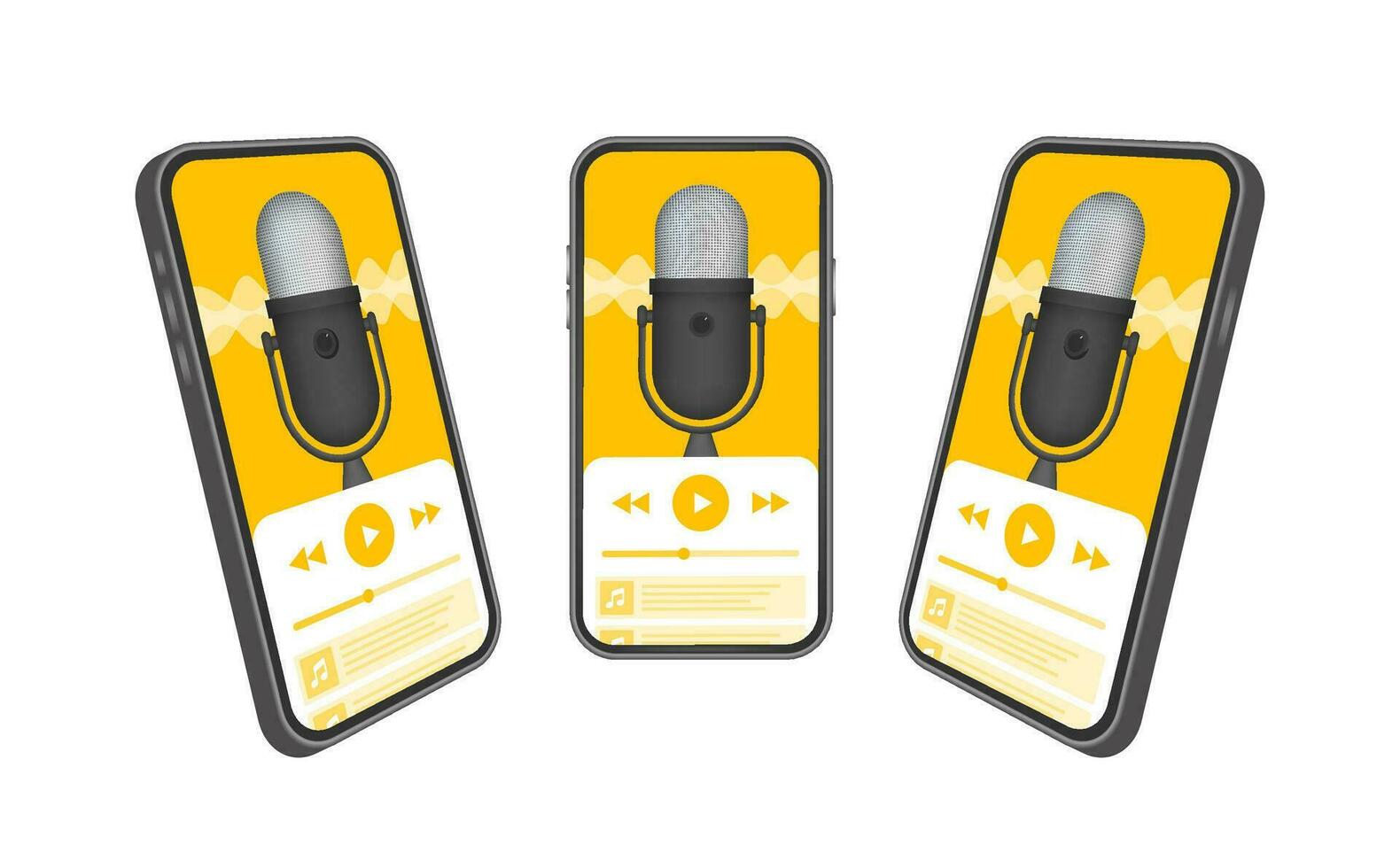 Podcast app on smartphone screen, mobile ui. Recording, online broadcasting. Audio blog. Radio program. Vector stock illustration. Pro Vector