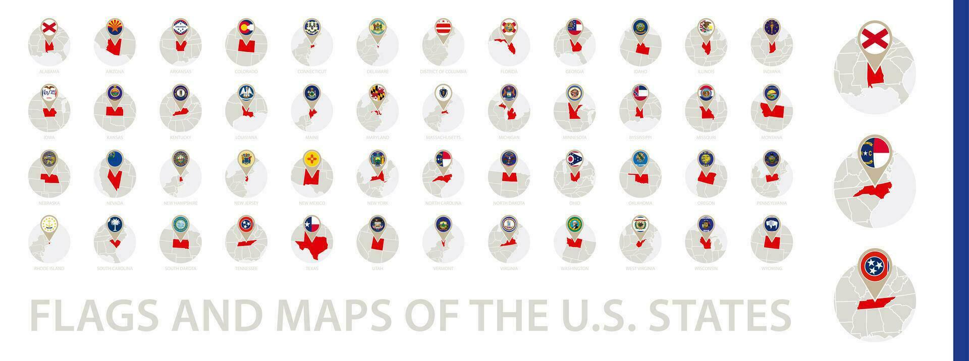 Flags and Maps of U.S. States, Alphabetically sorted flags and maps. Pro Vector