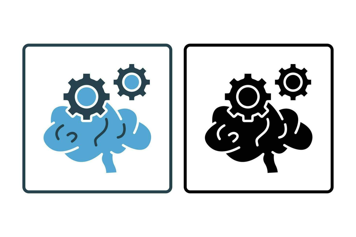 Thinking process icon. Brain icon with gear. icon related to critical thinking . suitable for web site design, app, user interfaces, printable etc. Solid icon style. Simple vector design editable Pro Vector