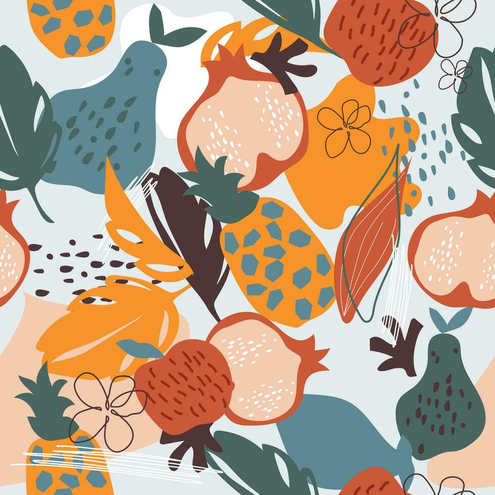 Geometric fruit shapes.Hand drawn abstract element pattern.Botanical seamless pattern vector
