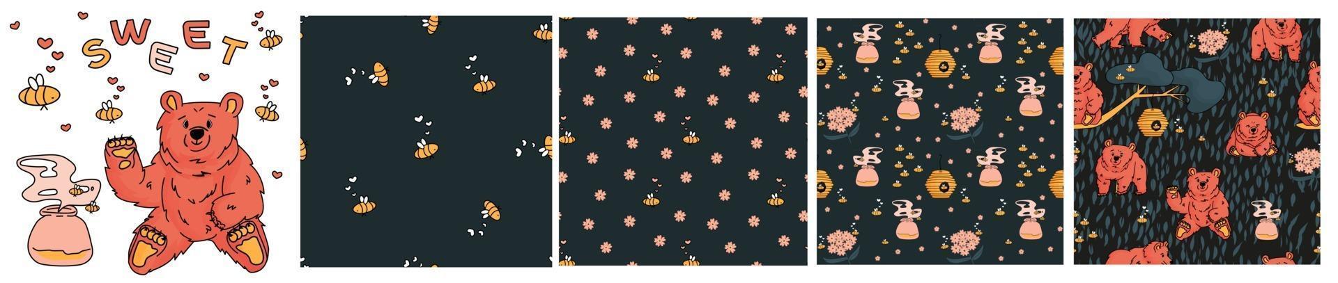Set of four seamless vector patterns of outline bears Pro Vector
