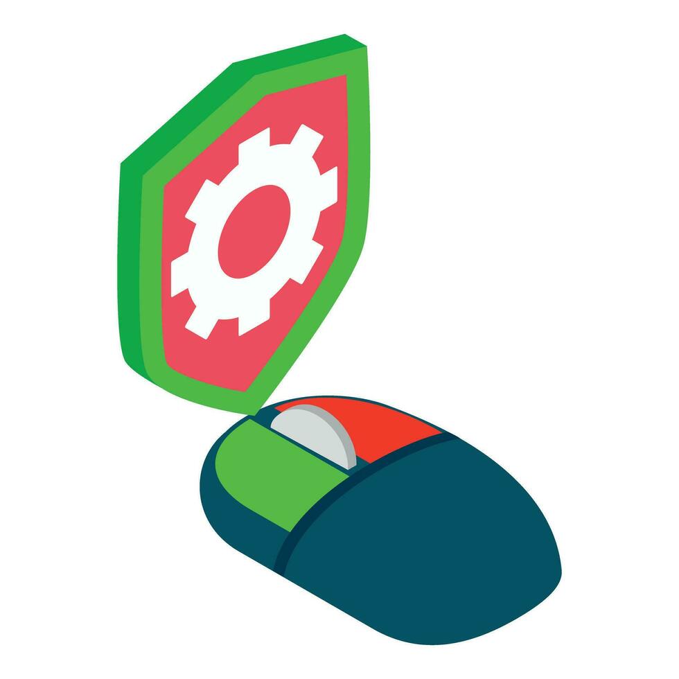 Tech support icon isometric vector. Computer mouse and shield with gear image Pro Vector