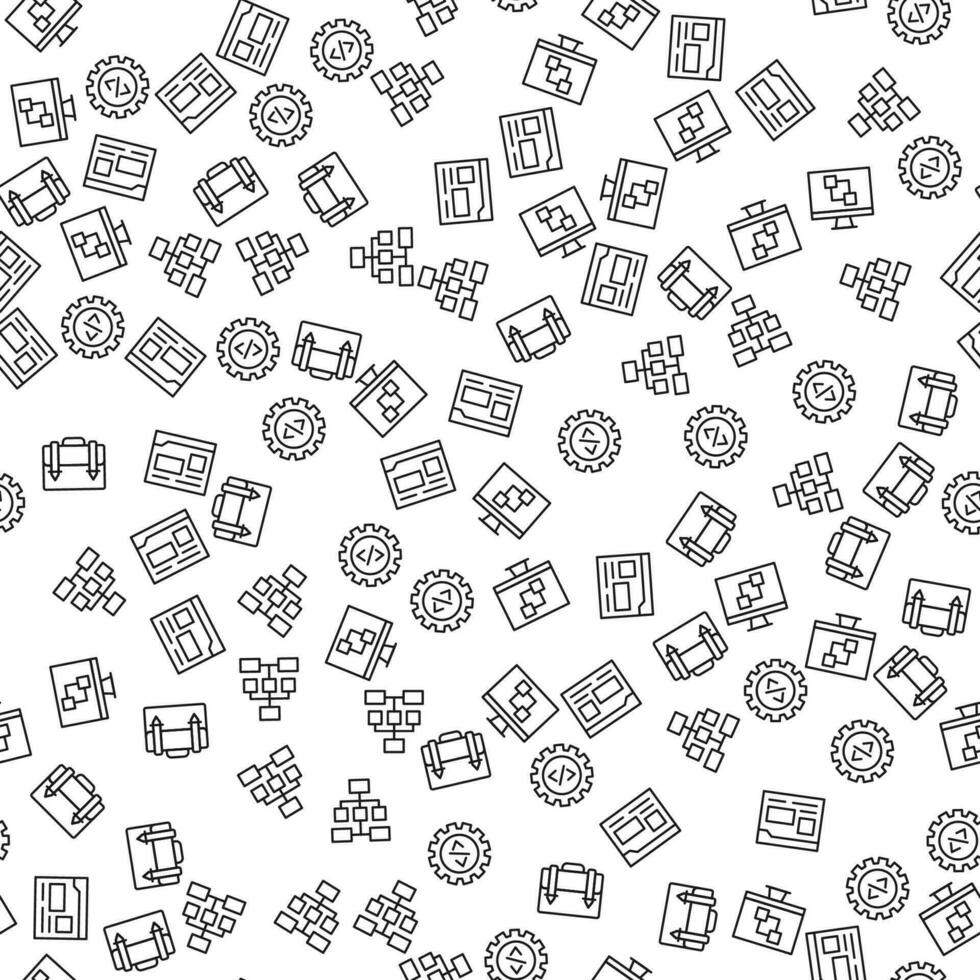 Map, Suitcase, Coding, Programming Seamless Pattern. Perfect for web sites, postcards, wrappers, stores, shops Pro Vector