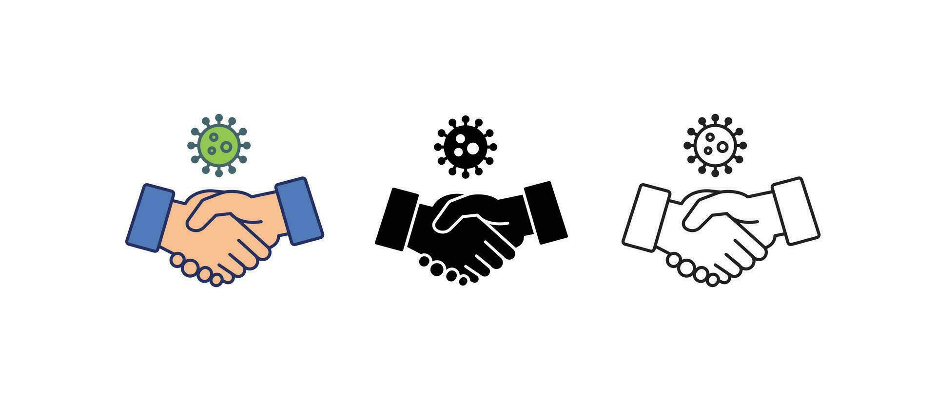 Please avoid physical contact when greeting. Physical distancing. Coronavirus can transmit easily through hands shake. Don't shake hands icon. Vector illustration. Design on white background. EPS 10. Pro Vector