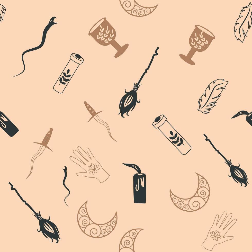 Magic and heaven seamless pattern, with magical elements such as snake, eye. Symbols and elements of the witchcraft theme. Pro Vector