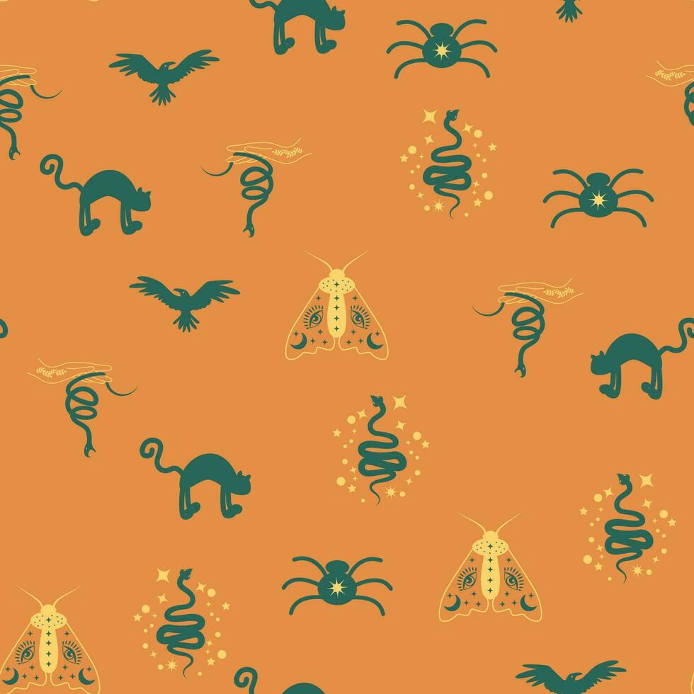 Magic and heaven seamless pattern, with magical elements such as snake, eye. Symbols and elements of the witchcraft theme. Pro Vector