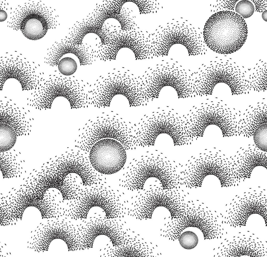 Abstract dotted geometric shapes seamless pattern. Flowing artistic background with arch and balls. Artistic texture Pro Vector