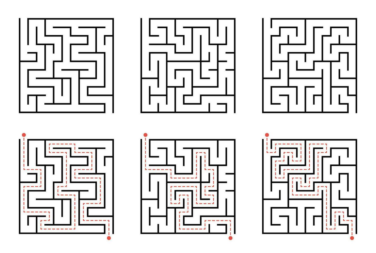 Labyrinth line pattern. Rectangle labyrinth with entry and exit. Vector labyrinth of low or medium complexity. Pro Vector