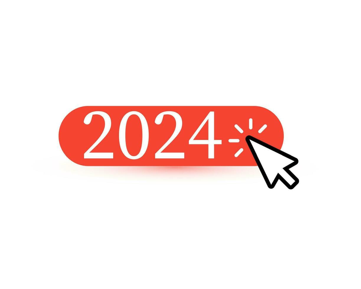 Red button icon with 2024 numbers and mouse pointer, button clicked icon symbolized entering to new year. Perfect for your New Year greeting cards, calendars and web banners. Vector illustration. Pro Vector