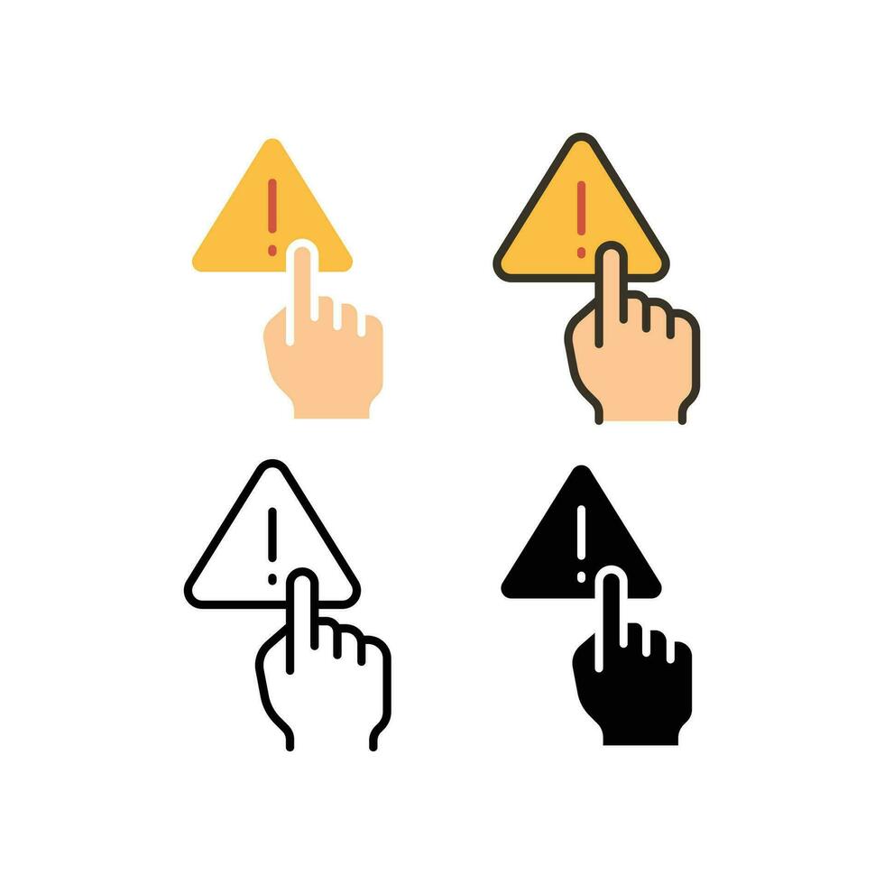 Index finger touch triangle warning symbol with exclamation mark inside for no manage hand sign. Finger, gesture, hand, interaction, warning icon Vector illustration Design on white background. EPS10 Pro Vector
