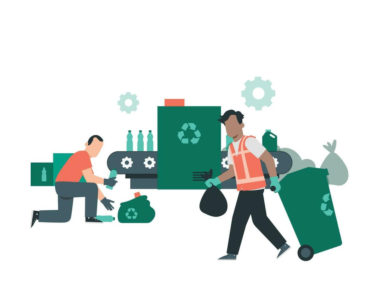 Garbage sorting and recycling concept. Flat style vector illustration on white background sustainability practices concept. Pro Vector